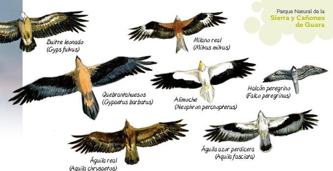 Las múltiples oquedades de las rocas son un lugar excelente para la nidificación de numerosas aves, sobre todo para las grandes rapaces entre las que destacan por su gran número los buitres leonados. También encontramos en los cielos alimoches, halcones y cernícalos junto a águilas reales y águilas perdiceras.