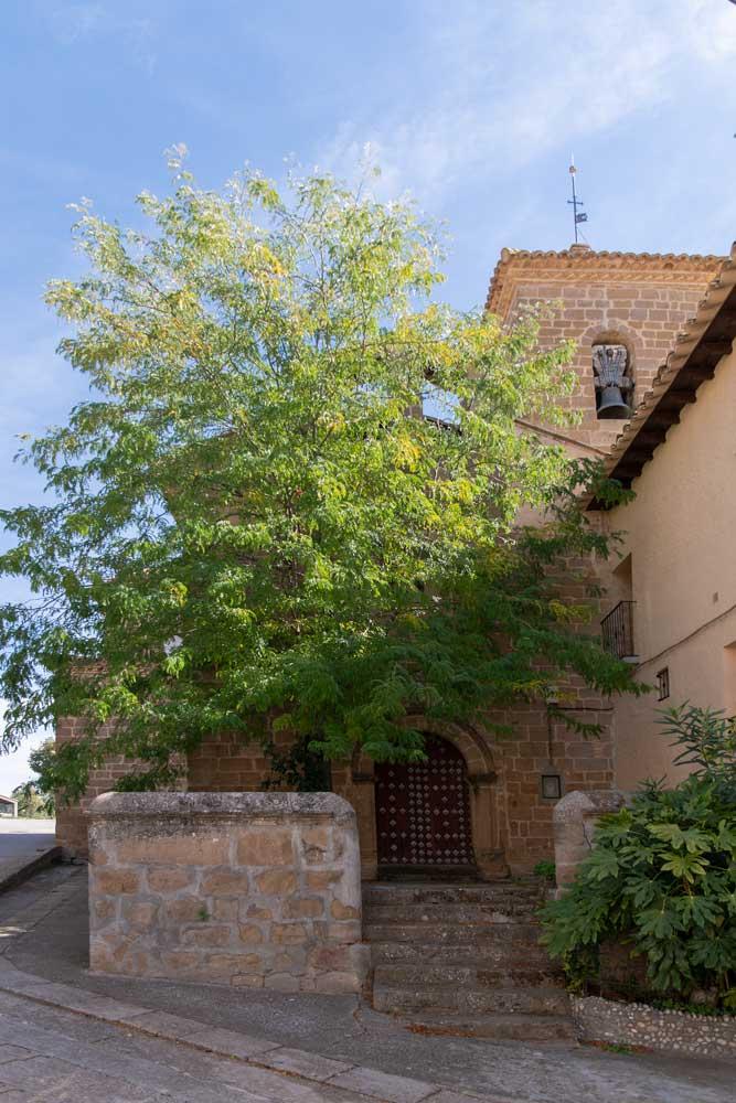 Una plazuela irregular modelada por la iglesia y un par de viviendas, canaliza a la calle única descendente que va repartiendo el resto de las construcciones.